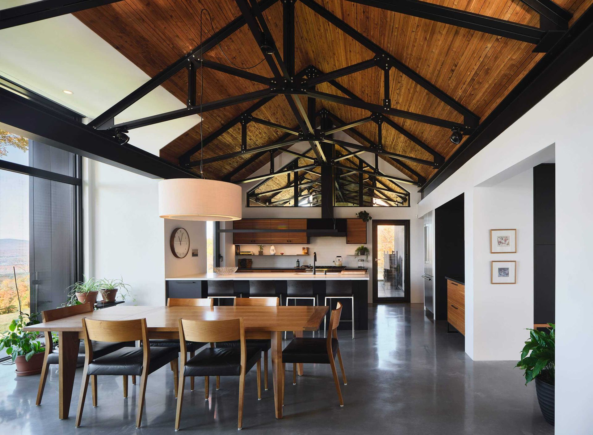 With its gabled roof and minimalist architecture, the residence is low and elongated, so as not to be buffeted by the west winds. It is inside that the house reveals itself. The main structure is simple, open, and straightforward, with living areas arranged in a row.