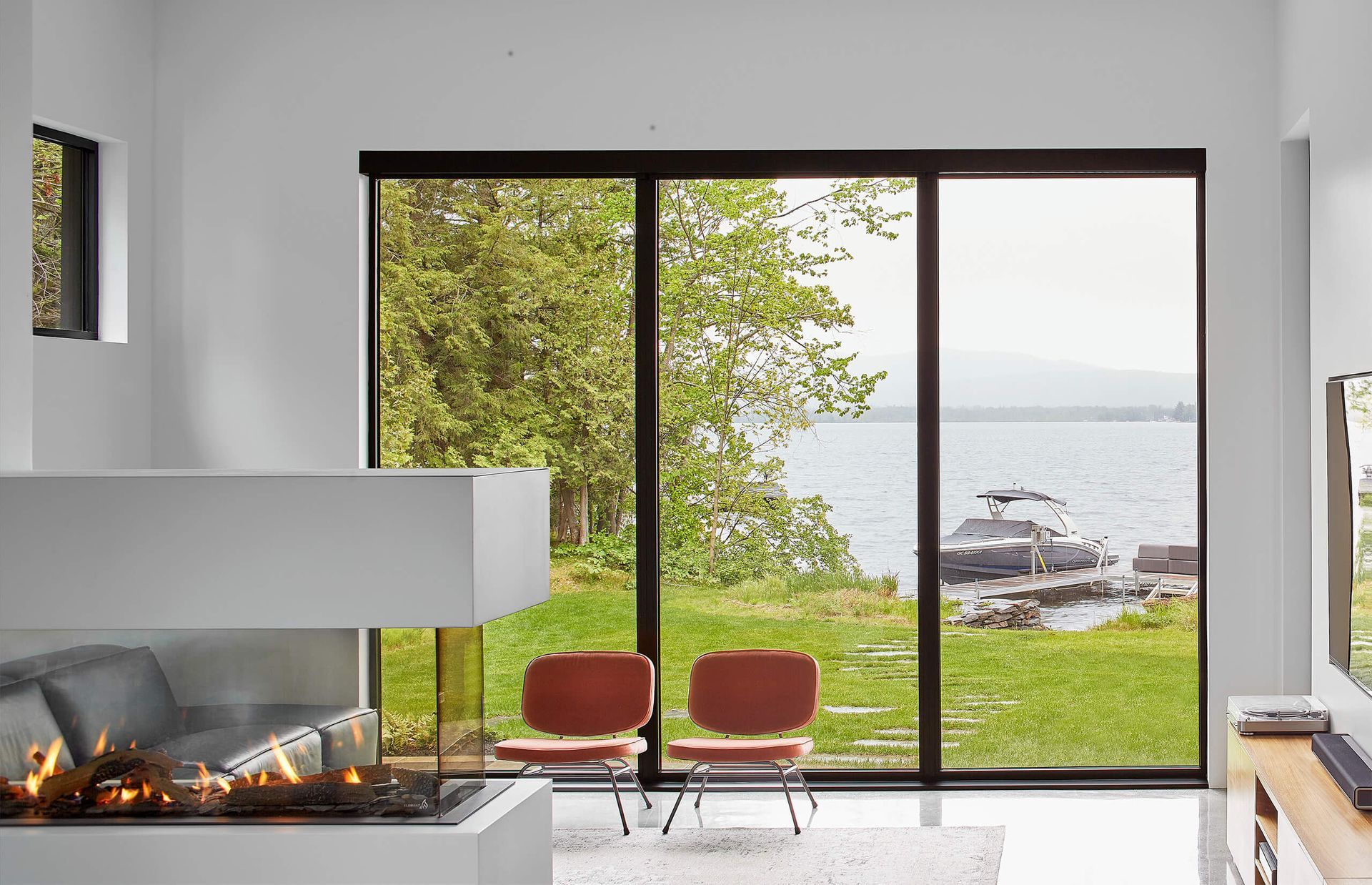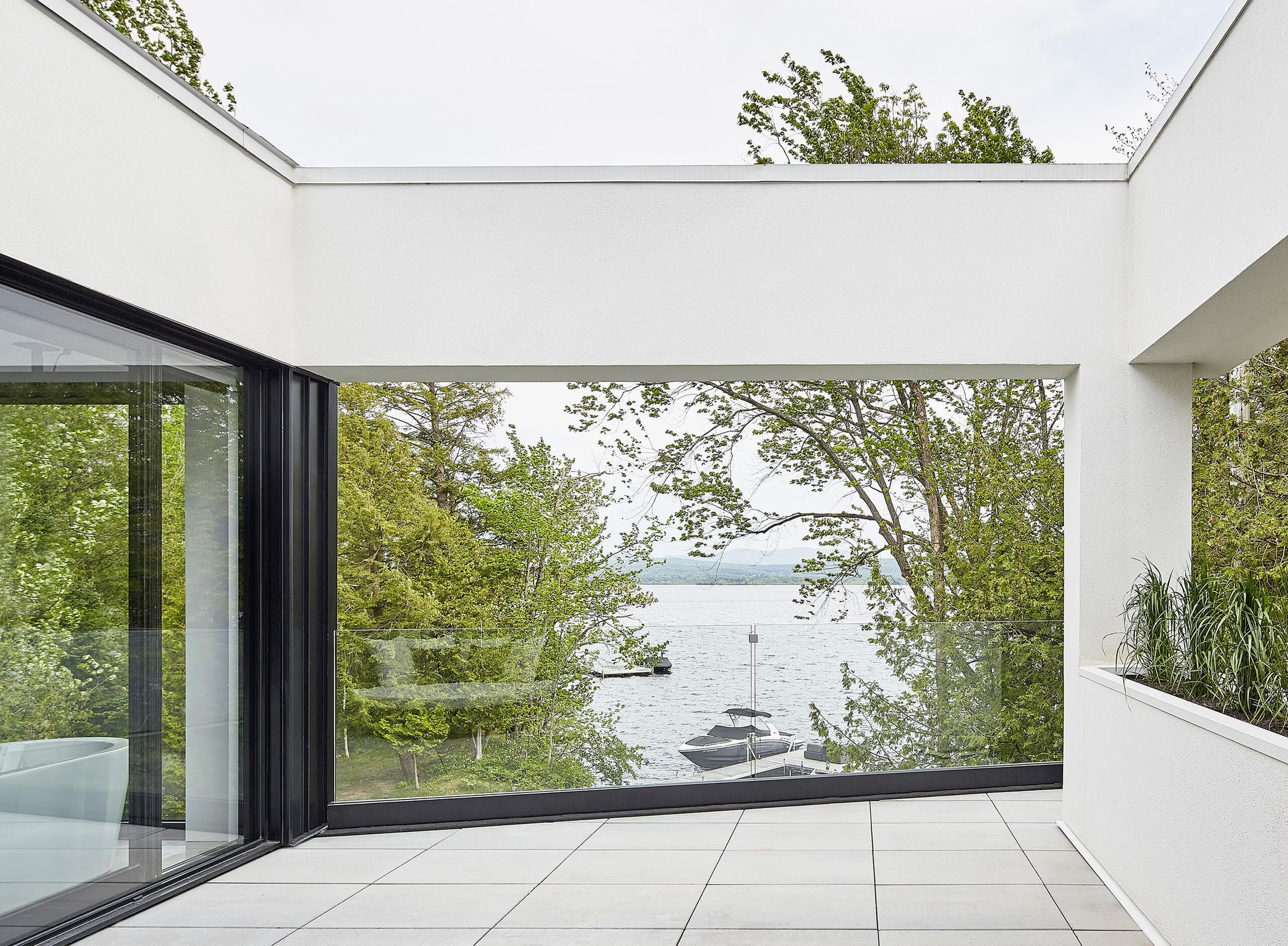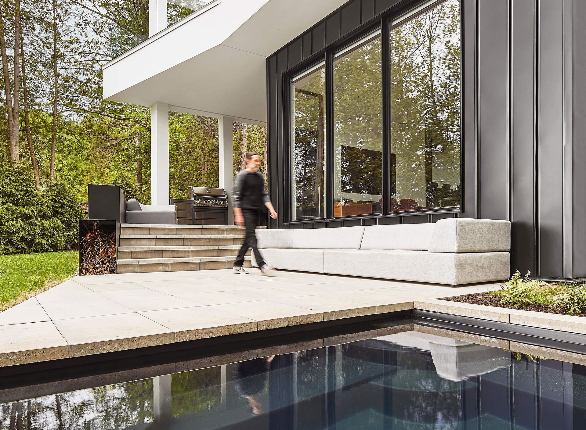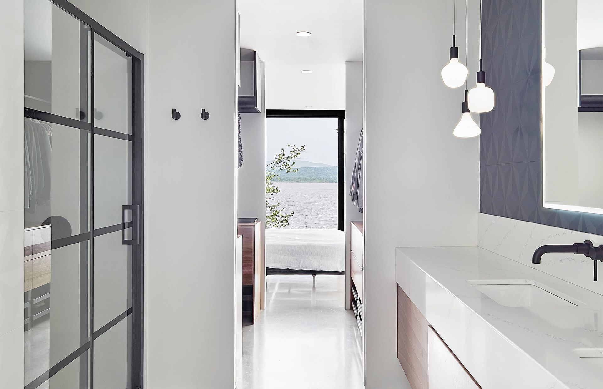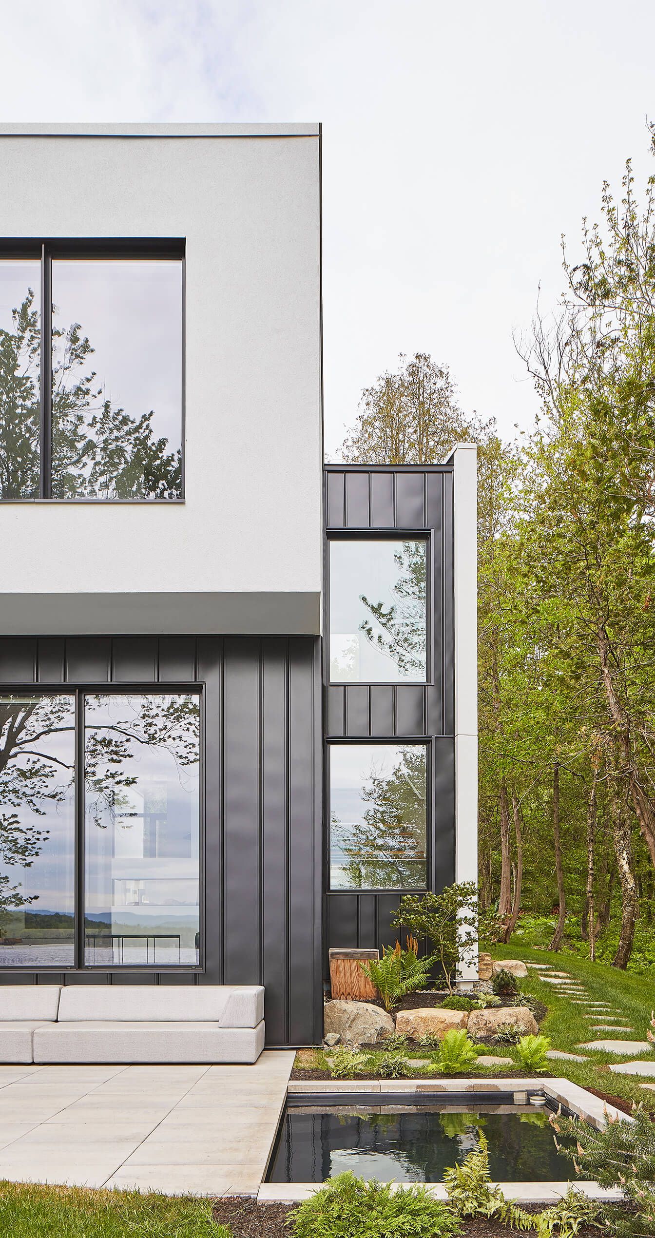 Nichée le long de la magnifique rive du lac Brome, cette maison s’inspire des lignes pures de l’étendue d’eau et de l’horizon dégagé avec lesquels elle dialogue intimement. Sa forme simple se fond à la nature environnante.